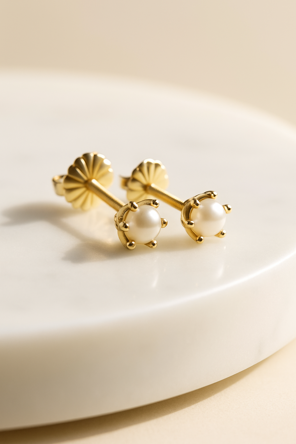 Aro pistilo de oro 18K con perla natural, diseñado para realzar la elegancia y delicadeza de la joyería fina. Su estructura minimalista en oro sólido destaca la perla central, convirtiéndolo en un aro cómodo, luminoso y atemporal.